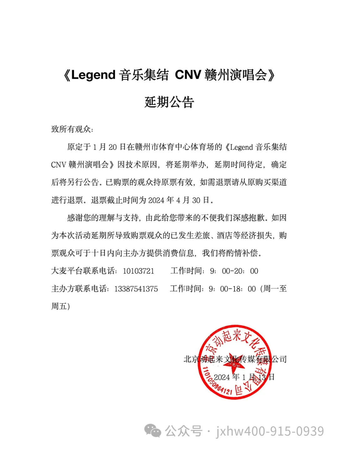 关于Legend 赣州CNV·音乐集结演唱会社会稳定风险评估的公示